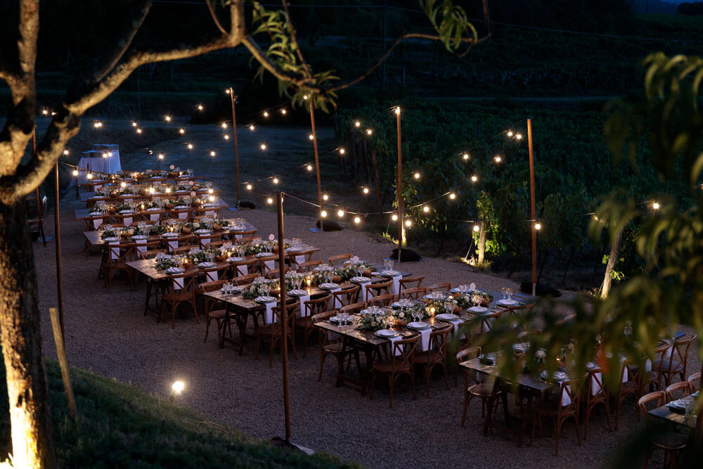 cena matrimonio luci toscana